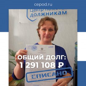 Елена Васильевна обратилась к нам с долгом 1,3 млн. руб. Долги накопились по 3 банкам и 26 МФО. Несколько дней назад мы передали Елене определение об окончании процедуры банкротства и освобождением от обязательств.